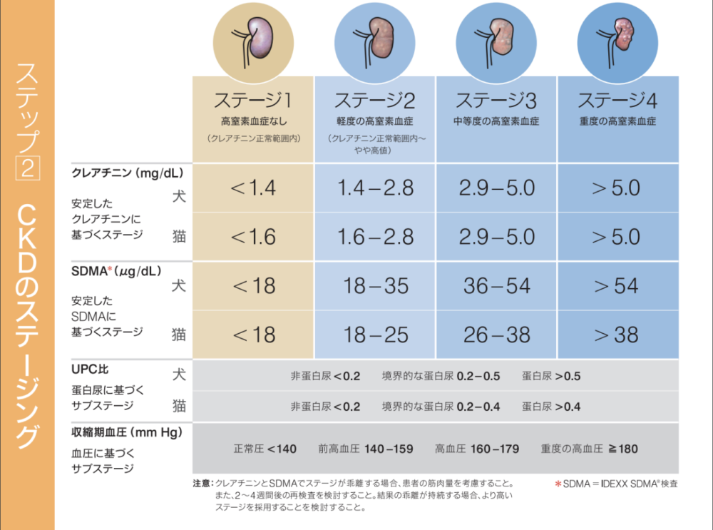 血液検査や尿検査、血圧測定のほか、腎臓の超音波検査などを実施して、総合的に判断する必要があります。