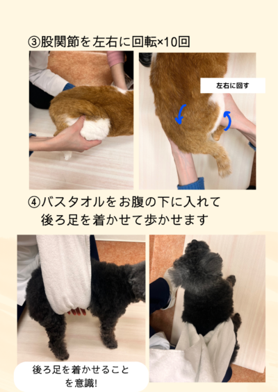 手術後の経過によりますが、だいたい2週間を目安にご自宅でリハビリをして頂いています。リハビリの仕方は看護師が丁寧にお教えします。