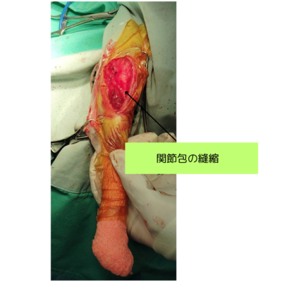 関節包縫縮:関節を取り囲んでいる関節包を縫い縮めることにより、膝蓋骨を大腿骨に押し当て、脱臼しづらくします。